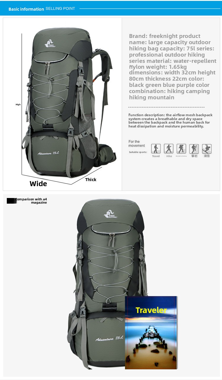 תיק טיפוס הרים גדול בקיבולת 75 ליטר